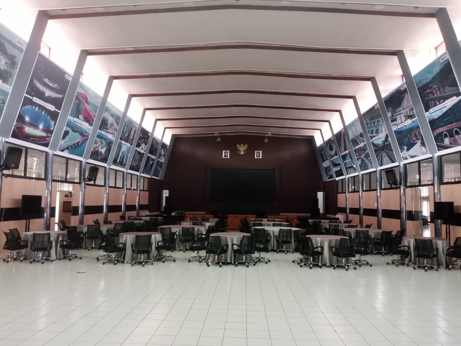 AULA Pusbangkom ACP merupakan ruang meeting representatif yang dirancang untuk mendukung berbagai kegiatan strategis, seperti rapat koordinasi, seminar, workshop, diskusi kelompok, hingga kegiatan presentasi berskala besar. Ruangan ini memiliki kapasitas luas dengan tata ruang yang fleksibel, sehingga dapat disesuaikan dengan kebutuhan acara formal maupun semi-formal.